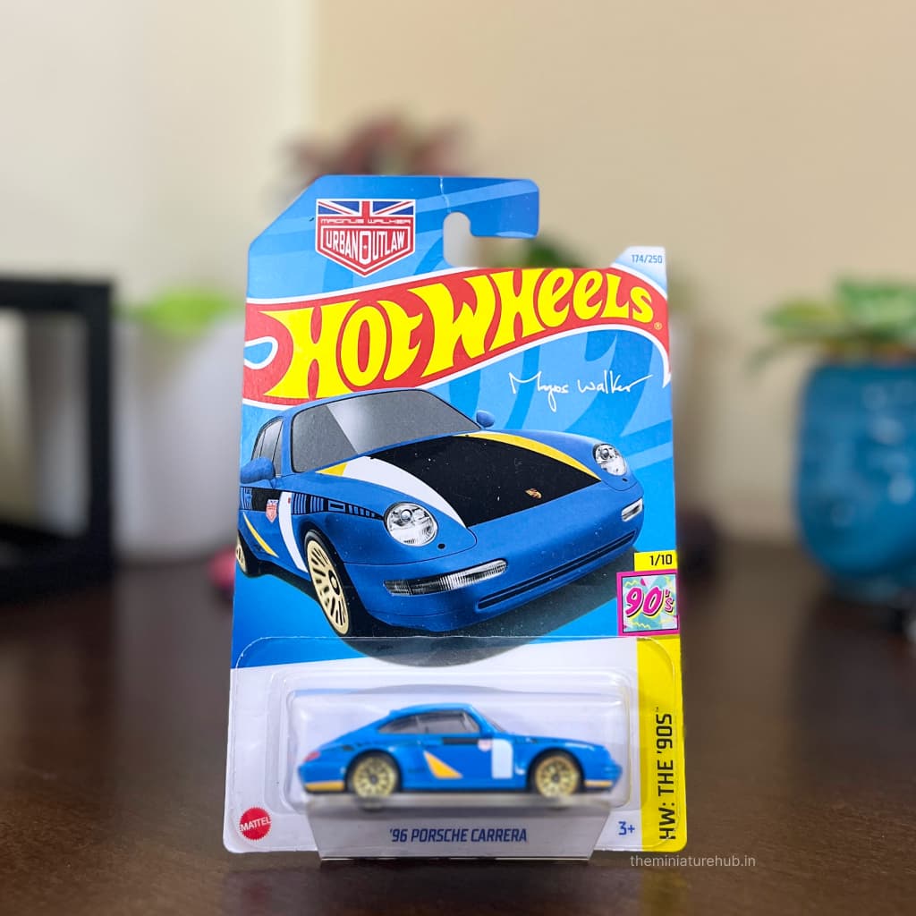 The Hot Wheels ’96 Porsche Carrera (Blue) from the HW: The ’90s series pays tribute to one of the most iconic eras of Porsche design. Featuring the classic silhouette of the 993-generation 911 Carrera, this casting captures the essence of the 1990s sports car scene with authentic styling and collectible appeal.