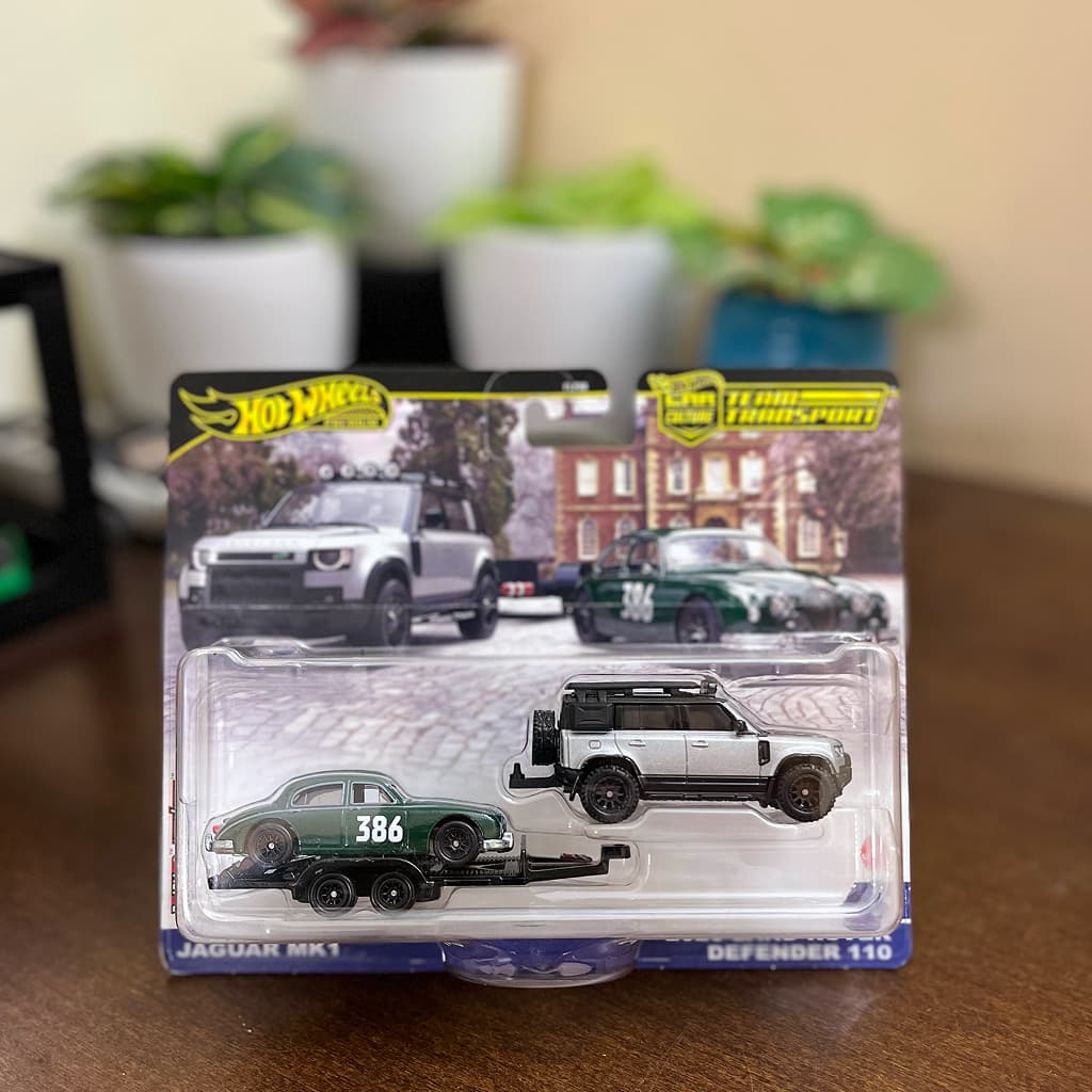 The Hot Wheels Team Transport Jaguar MK1 & 2023 Land Rover Defender 110 (#74) is part of the premium Team Transport lineup, designed for collectors who appreciate motorsport heritage and realistic vehicle transport displays.