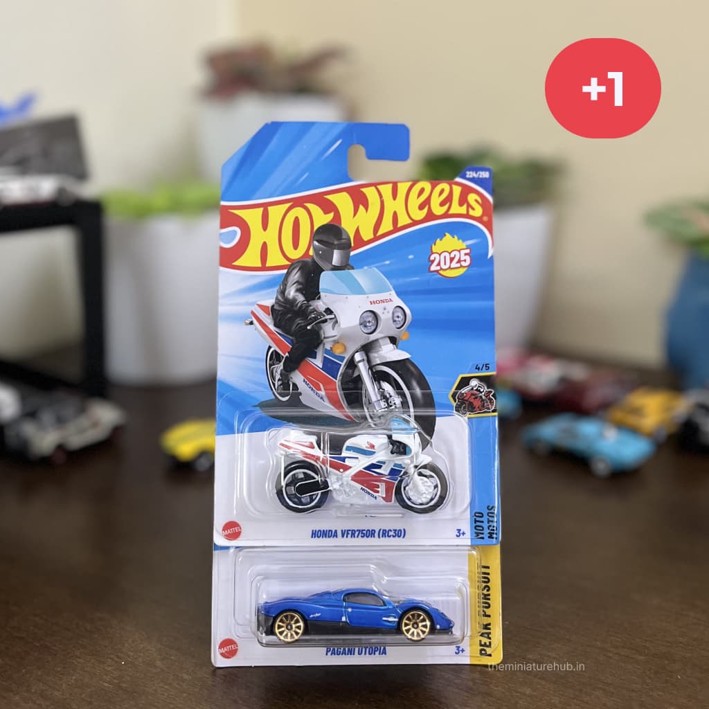 The Hot Wheels Combo Pack of 3 is a great deal for collectors and enthusiasts. This pack includes two known models – Honda VFR750R (RC30) and Pagani Utopia – along with a Random Hot Wheels car, making it an exciting surprise addition to your collection.